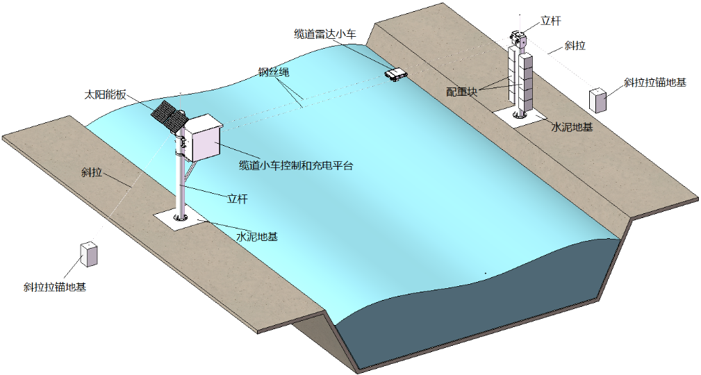 产品主要模块由缆道、控制及传输系统、雷达运行车、雷达水位计、雷达流速仪组成,通过水位、多垂线流速测量以及河道断面计算河道整体流量。可适用于高流速、宽江河、水文站等多场景流量数据的在线监测。 双轨式雷达测流系统由雷达波表面流速仪、雷达水位计、雷达运行车、全自动测流控制(含数据采集/遥测)、太阳能供电系统、自动充电控制装置、雷达波立杆及其他配件辅材等组成。主要运用在宽河道、水文站等相关领域自动监测。